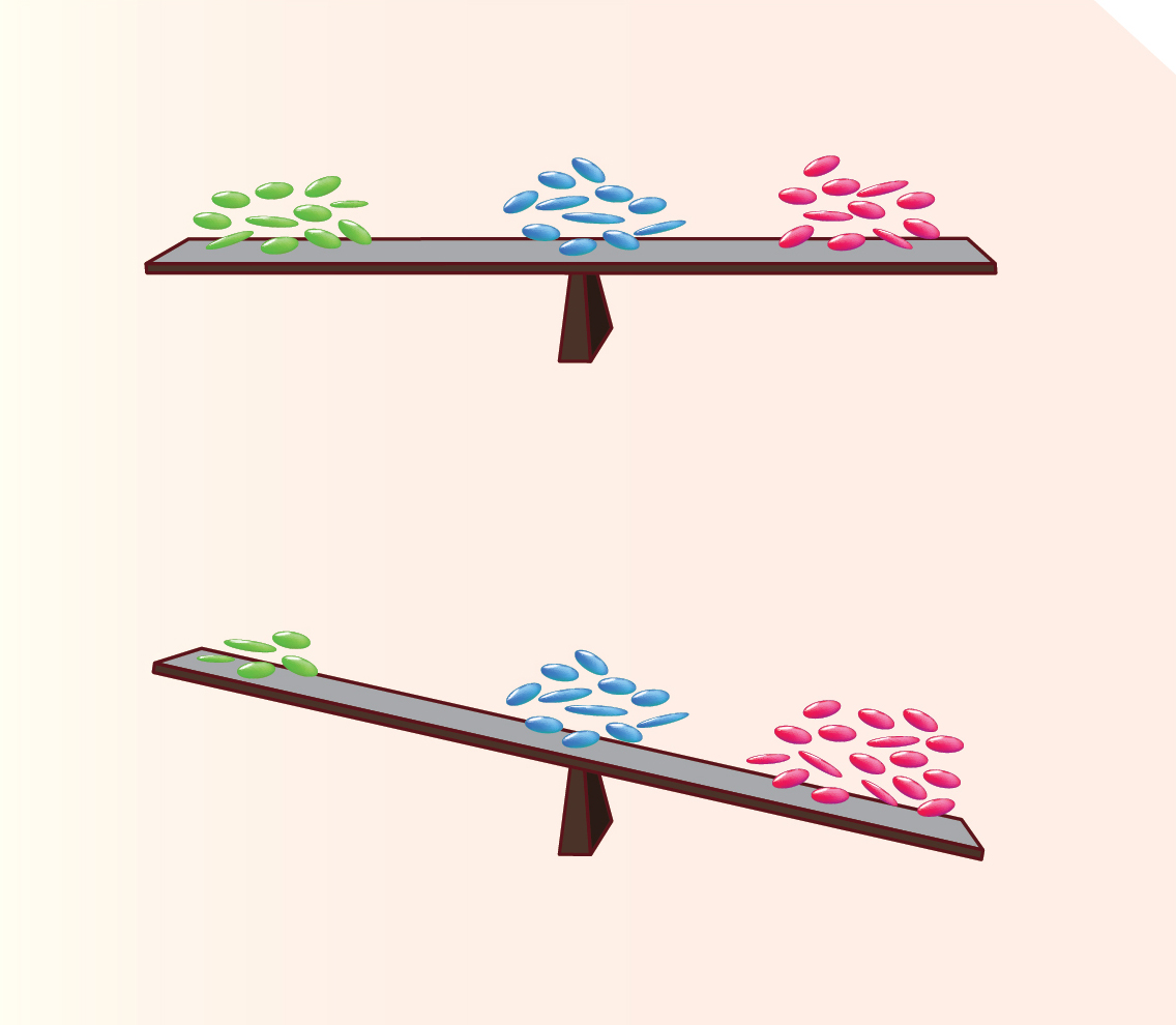 Each microbiota contains 3 kinds of bacteria that live together with the correct balance: